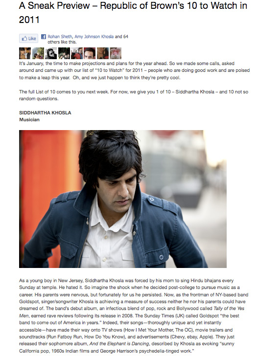 Goldspot frontman Siddhartha Khosla composed and performed the songs for new film 'Today's Special,' starring Aasif Mandvi (of 'The Daily Show w/ Jon Stewart'), and Bollywood legends Naseerudeen Shah and Madhur Jaffrey.